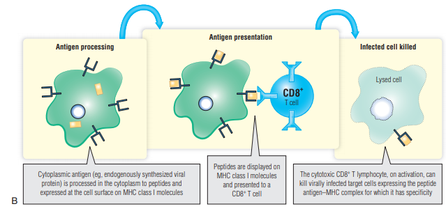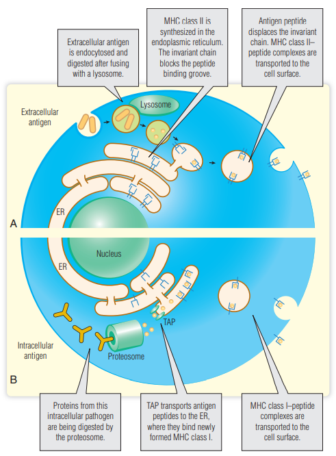 Fig 10.2 细胞外抗原(A)和细胞内抗原(B)的加工途径