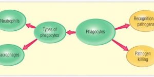 寄生虫是人类进化过程的一个重要威胁。由于卫生条件的改善,对于发达国家的人们来说这不再是一个严重的问题,但世界上仍有三分之一的人口面临寄生虫问题的威胁。寄生虫有各种各样的形状和大小(从1毫米到10m),并且生命周期比较复杂,包括卵,幼虫和成虫三个阶段。虫卵能抵御胃中的低pH值以及蛋白质的分解消化,直到到达下肠道它们才会孵化。下部肠道为成虫提供了保护,使其免受许多免疫反应成分的影响。为克服这个问题,肥大细胞和嗜酸性粒细胞已经进化为能够对生活在肠道中的蠕虫产生反应(Fig 22.1)。这些细胞被激活后可将有毒物质排放至肠腔中,增加粘液分泌,引起平滑肌收缩,从而驱除蠕虫。Fig22.2总结了这些反应。呼吸道中也进化出了相同的机制。
