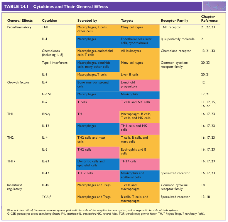 Table24.1 细胞因子及其一般效应。