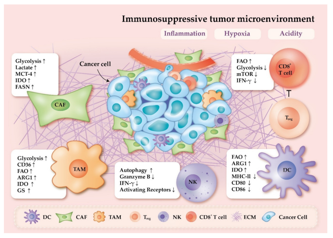 靶向激活CD8+T细胞脂肪酸氧化(FAO),促进细胞记忆维持的小分子和细胞因子可作为癌症和感染性疾病主流治疗方案的辅助手段。例如,抗糖尿病药物二甲双胍激活了5′-腺苷一磷酸活化蛋白激酶(AMPK),并改善了FAO在记忆CD8+TIL中的作用,在化学诱导的皮肤癌小鼠模型中证实有效。IL-15通过上调线粒体生物合成和诱导肉碱棕榈酰转移酶的表达来促进脂质代谢,肉碱棕榈酰转移酶是线粒体β-氧化的关键酶。这一过程已被证明在小鼠的记忆CD8+T细胞中上调,并提高了它们的存活率。在肿瘤治疗中,IL-15已被评价为一种辅助佐剂,对TIL的增殖和增强肿瘤抗原特异性T细胞的细胞毒活性有显著作用。