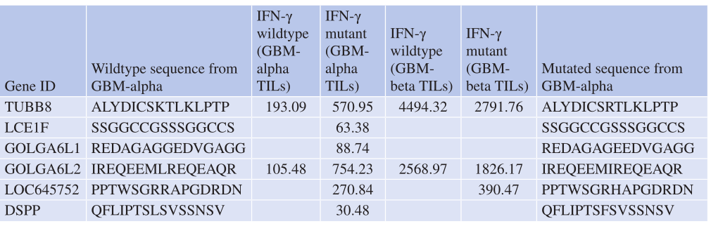 Table 4.2 MHC-I相匹配的不同患者的TIL突变表位的共同识别