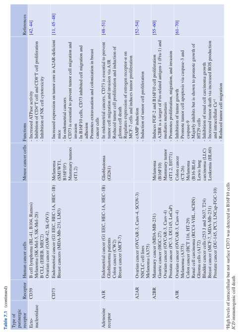 Table 7.2 嘌呤受体在人类癌症中的作用