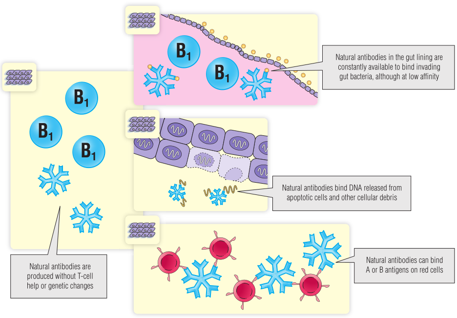 目前尚无证据表明分泌无害天然抗体的B1细胞能产生高亲和力的特异性抗体(这种抗体可以在没有T细胞帮助的情况下导致自身免疫性疾病)。