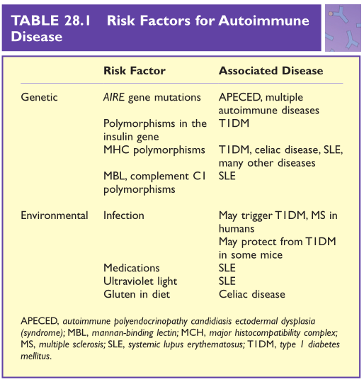 Table 28.1 自身免疫性疾病的危险因素
