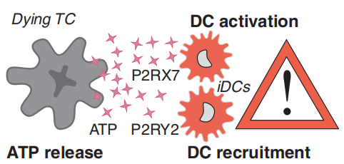 事实上,P2Y2或IL1受体的中和以及P2X7、NLRP3或caspase-1的敲除使免疫系统失去了对发生ICD的癌细胞产生保护性免疫反应的能力。