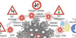 后来发现,CT26细胞缺乏受体相互作用的丝氨酸/苏氨酸蛋白激酶3(RIPK3)的表达,RIPK3是坏死性凋亡(坏死的一种调节形式)所需的一种蛋白质,而其他拥有坏死性凋亡所需的全部分子机制的小鼠癌细胞株可以刺激对包括蒽环类药物在内的细胞坏死性凋亡进行ICD。因此,不同形式的调节性细胞死亡(凋亡和坏死性凋亡)都可能导致ICD。