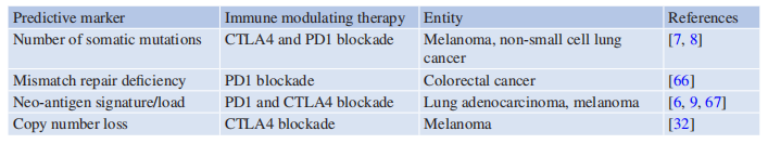 Table 13.2 肿瘤的基因改变可作为免疫检查点抑制物治疗的预测生物标志物