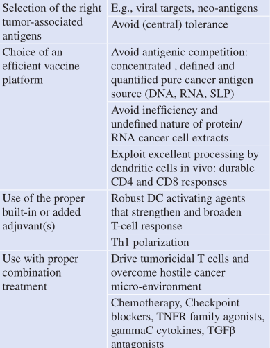 Table14.1列出了肿瘤疫苗成功的关键因素和相应的选择。