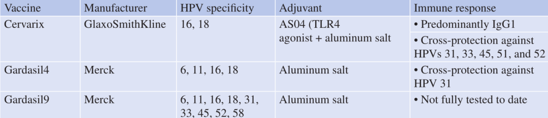 Table. 15.1 现有的预防性HPV疫苗