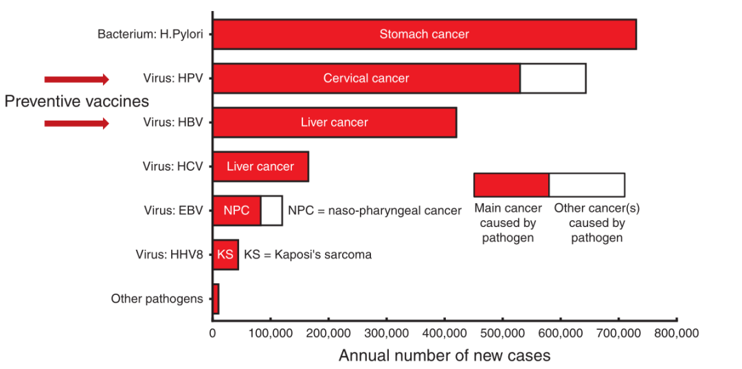 Fig 15.1 2012年全球病原体引起的人类恶性肿瘤发病率