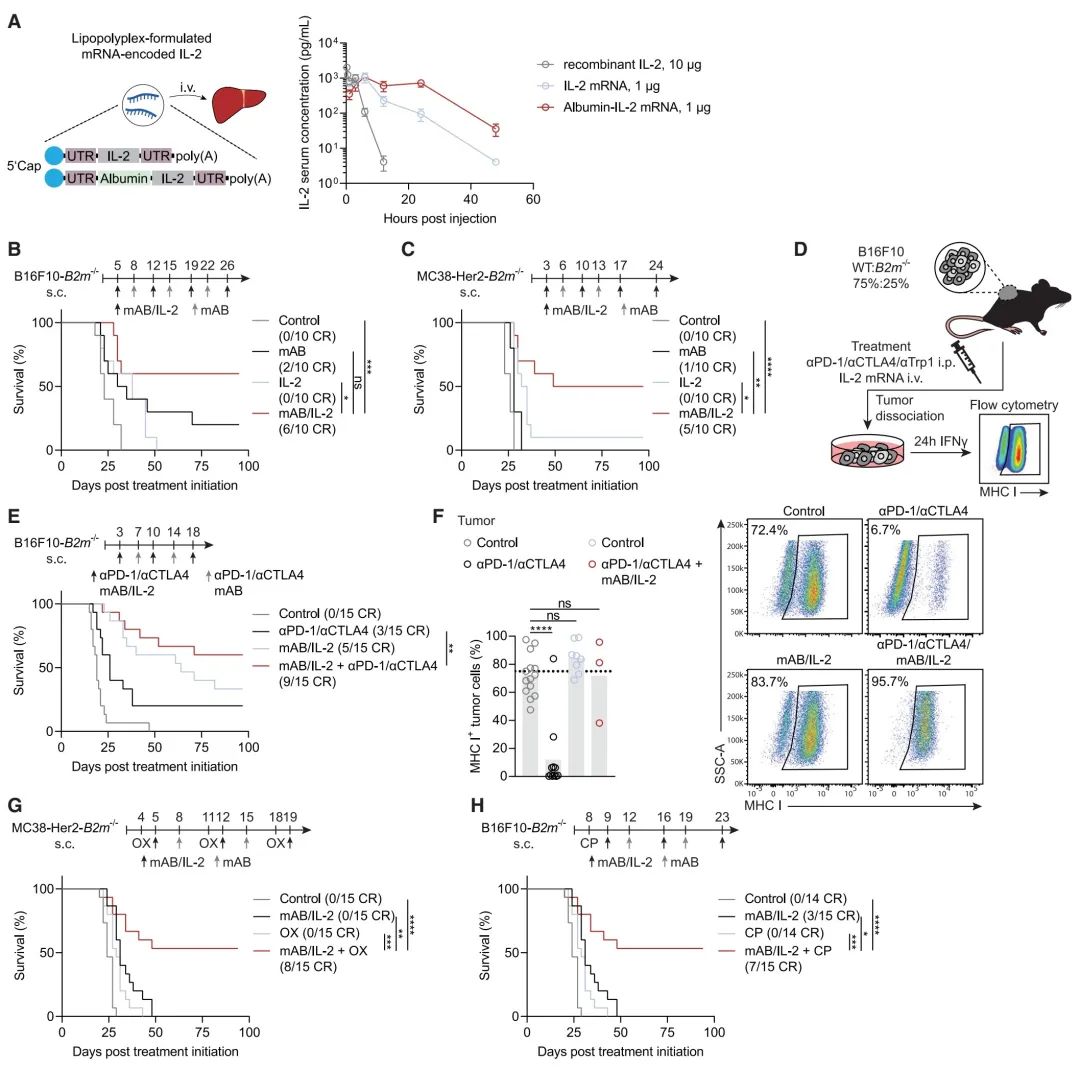 OncoLab实验室 文献阅读 Cancer Cell:通过mRNA技术编码持久性IL-2在MHC I类分子缺陷癌症中可恢复针对新抗原的CD8+ T细胞反应