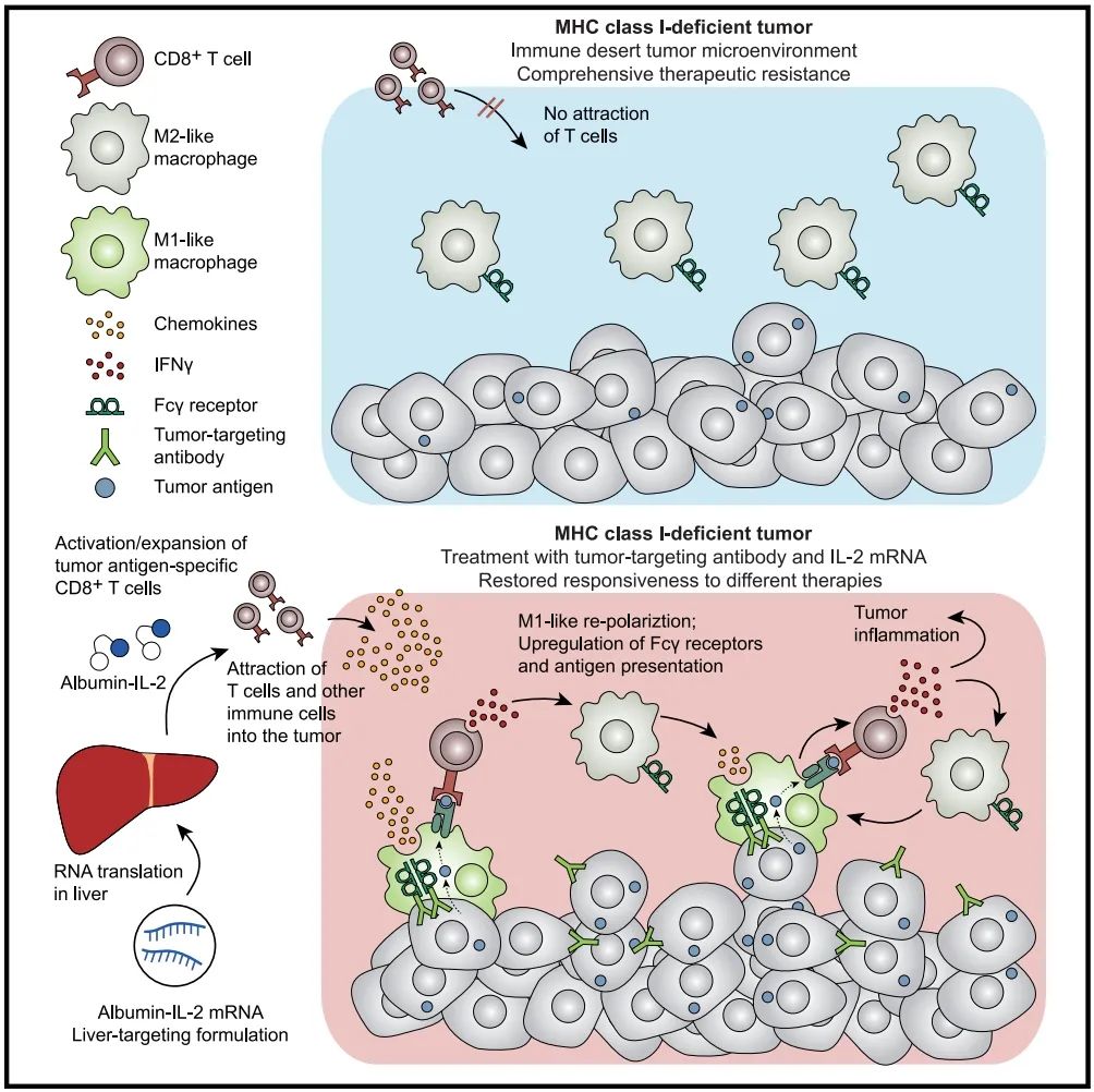 Cancer Cell:通过mRNA技术编码持久性IL-2在MHC I类分子缺陷癌症中可恢复针对新抗原的CD8+ T细胞反应