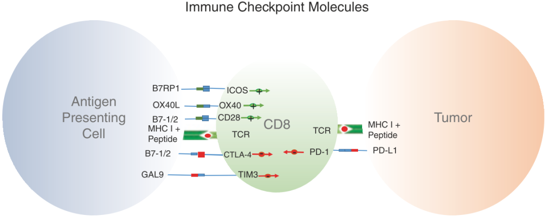 如前所述,最近的研究表明PD-1和CTLA-4可能在肿瘤微环境中的不同细胞类型上表达,其中CTLA-4主要在调节性T细胞(Tregs)上高表达,而PD-1则主要在CD8 T细胞上表达。阻断CTLA-4可以抑制肿瘤浸润性Tregs的抑制功能,而阻断PD-1不仅可以增强CD8 T细胞的功能,还能防止抗原识别过程中诱发的免疫耐受。这些发现支持了联合阻断PD-1和CTLA-4在肿瘤环境中具有协同效应的概念,类似于动物模型中观察到的效果。