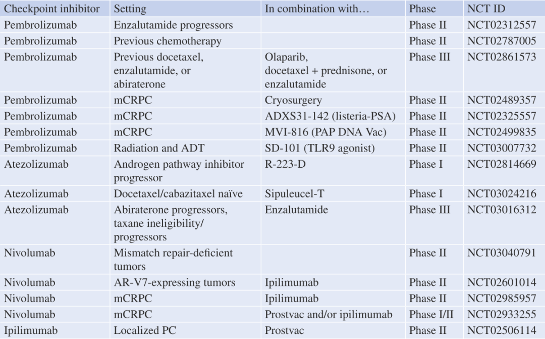 Table 35.1 前列腺癌的免疫检查点阻断临床试验