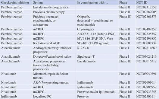 Table 35.1 前列腺癌的免疫检查点阻断试验